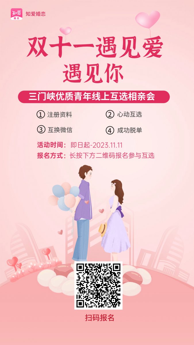 双11遇见爱,遇见你:三门峡优质青年线上互选相亲会!